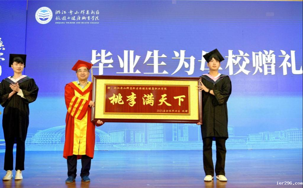 典礼最后,校长郑能波为毕业生拨穗、颁发毕业证书,并合影留念。